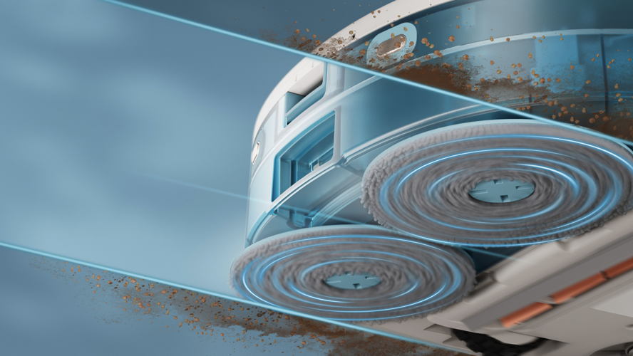 De HomeRun 5000 serie is uitgerust met twee roterende dweilen die zelfs hardnekkig vuil, stof en modderige pootafdrukken moeiteloos verwijderen. De zachte maar doeltreffende dweiltechnologie zorgt voor een smetteloze glans op alle harde vloeren met minimale inspanning én duidelijk zichtbaar resultaat. De capaciteit van het waterreservoir is voldoende om alles wat je wil dweilen in één keer aan te kunnen. Met deze blinkende vloeren weet je zeker dat je door de HomeRun 5000 serie schone voeten houdt.